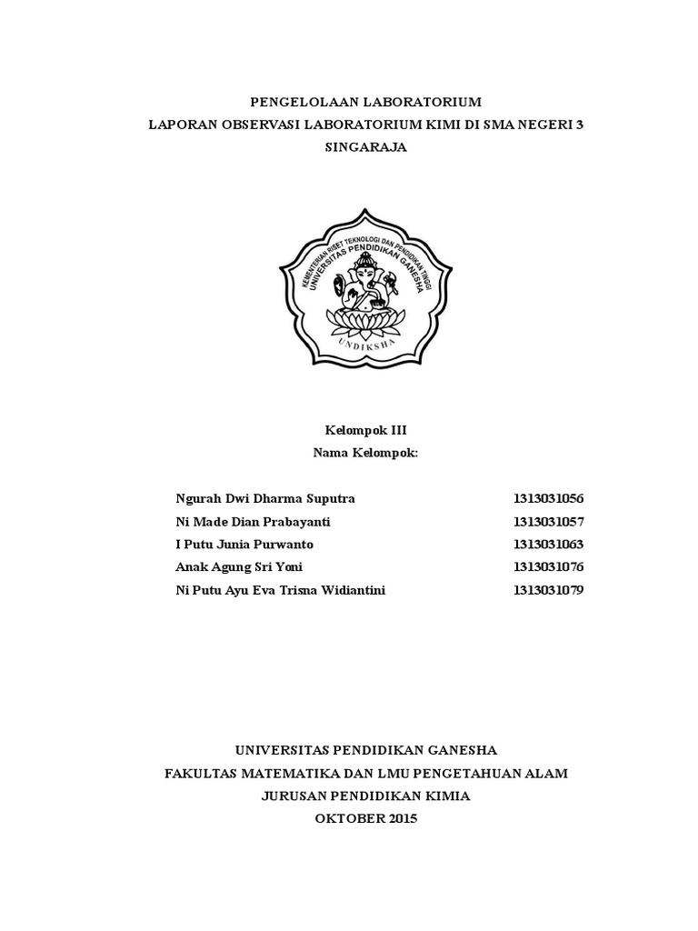 Karena masih dalam proses pembangunan banyak material bangunan yang menyebabkan lingkungan sekitar ruang kelas kotor. Laporan kepala laboratorium ipa smp/sma/smk tahun 2018 ini merupakan file terbaru yang akan saya bagikan pada postingan saya kali ini khususnya untuk kepala lab dalam mencari bahan referensi dalam membuat laporan bulanan atau laporan tahunan lab. Pada edisi tulisan kali ini, kami segera menyajikan untuk anda kumpulan contoh judul dan laporan ptk mapel ipa jenjang smp/ mts mulai dari kelas 7, 8 dan kelas 9. Laporan observasi kurikulumsma n 1 parakanuntuk memenuhi tugas akhir mata kuliah telaah kurikulum disusun oleh :rifa’ul janah 7101413278erlina ulfa 7101413316istiqomah 7101413353dwi lestari 7101413369reni harlestiyani 7101413387fitria nur wijayanti 7101413430 fakultas ekonomiuniversitas negeri. Laporan pelaksanaan on the job learning diklat calon kepala laboratorium ipa smp smp negeri 4 kaledupa oleh maharusu, s.si nip. Maya anggraini 113654006 azmil mufidah 113654017 arya dwi susetyadi 113654025 miftachul rahma 113654036 fafa neli silfana 113654041 bab i pendahuluan a. Format ini dibuat sebagai pertanggungjawaban kepala lab dalam mengelola lab. Dengan kemahakuasaan nya pula kami kelompok 4 dari kelas viii a telah menyelesaikan penyusunan laporan tugas ipa tentang menguji makanan. Aisyah fitri astuti (4401412075) rombel 3 program studi pendidikan biologi fakultas matematika dan ilmu pengetahuan alam universitas negeri semarang 2013 f kata.