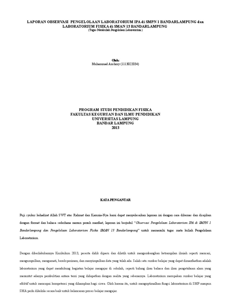 Contoh Laporan Observasi Laboratorium Ipa Smp. Pdf pelatihan pembuatan alat peraga ilmu pengetahuan bumi. Kondisi tata ruang laboratorium ipa di smp negeri 1 surakarta hingga saat ini masih menjadi satu dengan jajaran kelas yang ada di smpn 1 surakarta dan belom memiliki lahan khusus, sesuai dengan kurikulum yang terbarukan dan digunakan oleh sekolah, ruang laboratorium yang ada sudah memenuhi stadart penataan ruang yang. Pengelolaan ipa 1 dan 2. Laporan pelaksanaan on the job learning diklat calon kepala laboratorium ipa smp smp negeri 4 kaledupa oleh maharusu, s.si nip. Dalam pengertian sempit laboratorium s e ring diartikan sebagai tempat yang berupa gedung yang dibatasi oleh dinding dan atap yang didalamnya terdapat sejumlah al a t dan bahan praktikum. Untuk penilaian ini bisa juga anda gunakan dengan teknik penilaian diri sendiri dan antar teman yang dapat anda pelajari melalui artikel saya sebelumnya. Mungkin sebagian dari kita sudah tahu struktur penulisan contoh laporan hasil pengambatan biologi yang sesuai aturan namun masih mengalami kebingungan saat membuatnya sendiri. Karena saat ini semua kegiatan belajar siswa masih dilakukan dari rumah. Triastuti handayani (2011 58 005) Maya anggraini 113654006 azmil mufidah 113654017 arya dwi susetyadi 113654025 miftachul rahma 113654036 fafa neli silfana 113654041 bab i pendahuluan a. Puteri rahelma 180384205006 dilentania laras 190384205006 herbin sianturi 180384205044 siti nurhasidah 150384205057 khairani 190384205017 Dalam pembelajaran biologi laboratorium dapat berupa ruang terbuka atau alam terbuka. Terdiri dari judul praktikum nama siswa kode absen kelas nama sekolah dan tahun. Laporan kepala laboratorium ipa smp/sma/smk tahun 2018 ini merupakan file terbaru yang akan saya bagikan pada postingan saya kali ini khususnya untuk kepala lab dalam mencari bahan referensi dalam membuat laporan bulanan atau laporan tahunan lab. Contoh rubrik penilaian ujian praktikum ipa smp.