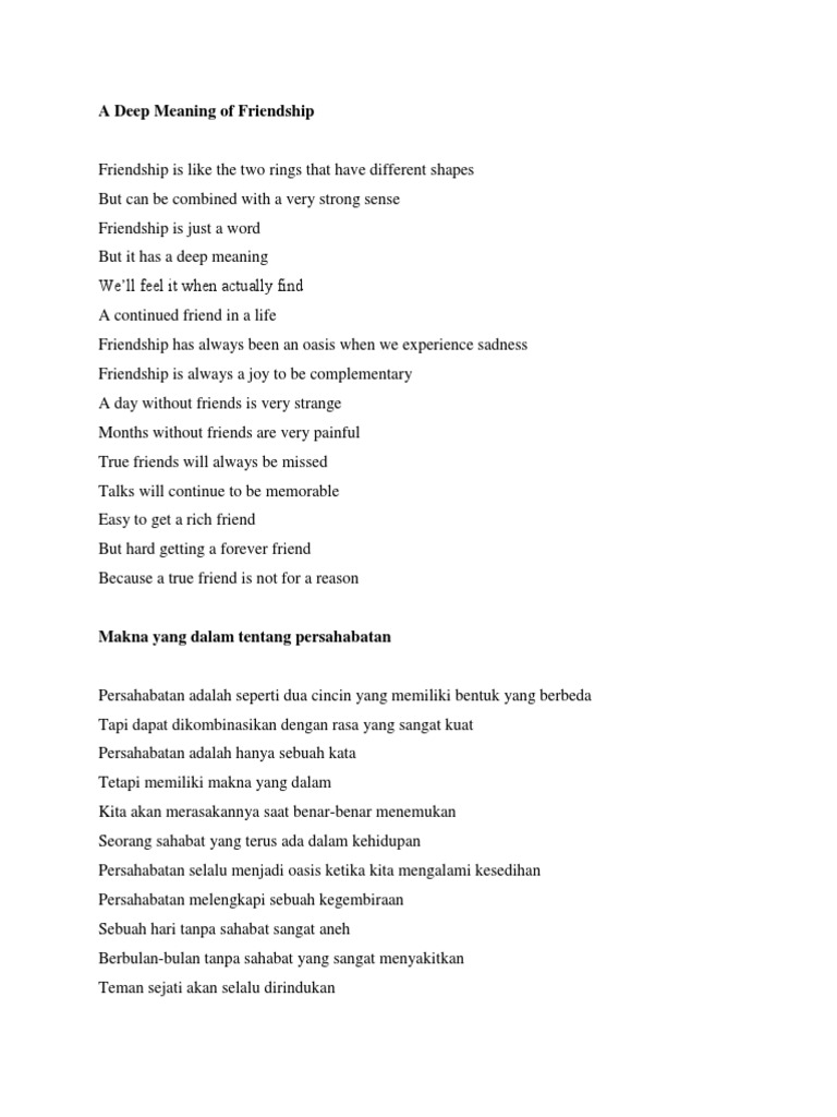 Jika kalian mencari contoh puisi 16 baris untuk tugas sekolah atau sebagai referensi tugas kuliah, mungkin daftar puisi cinta menyentuh hati cocok. Puisi bahasa inggris persahabatan puisi bahasa inggris persahabatan. Berikut adalah puisi bahasa inggris tentang sahabat buat anda : Puisi bahasa inggris, radenzrama, puisi bahasa inggris. A true friend is the one who picks you up when you fall. Selain sebagai sarana mengungkapkan ekspresi, puisi juga bisa membantumu belajar kursus bahasa inggris. Sahabat adalah orang yang selalu ada. A true friend is there when you want to die. It felt like winning a lottery.