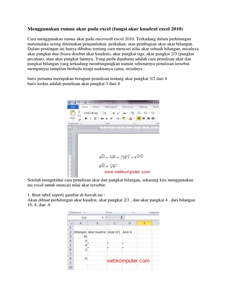 Terdapat 3 cara untuk menghitung pangkat di excel, yaitu: Demikian cara membuat dan menulis pangkat pada excel. Karena kita bisa menggunakan tanda sisipan (^) untuk memangkatkan suatu angka, itu berarti kita juga. Jika sudah cukup mahir menggunakan excel, cara mencari hasil akar di dalam excel bisa dilakukan dengan mengisi data dalam bentuk sel antar sel. Cara menggunakan rumus pangkat dan akar di exceluntuk menghitung nilai perpangkatan pada aplikasi microsoft excel, kita bisa gunakan cara berikut:=nilai1^nil. Solusi persamaan polinomial secara manual kita bisa. Kita langsung lihat pada tabel akar pangkat 3. Tulis rumus =cells^ (1/n), cells yang dimaksud adalah posisi cells dari angka yang akan dihitung. Tapi yang perlu diingat, =sqrt ini hanya berlaku untuk hitungan akar kuadrat, selain akar kuadrat seperti akar pangkat 3 atau akar pangkat 4 tentu tidak bisa.